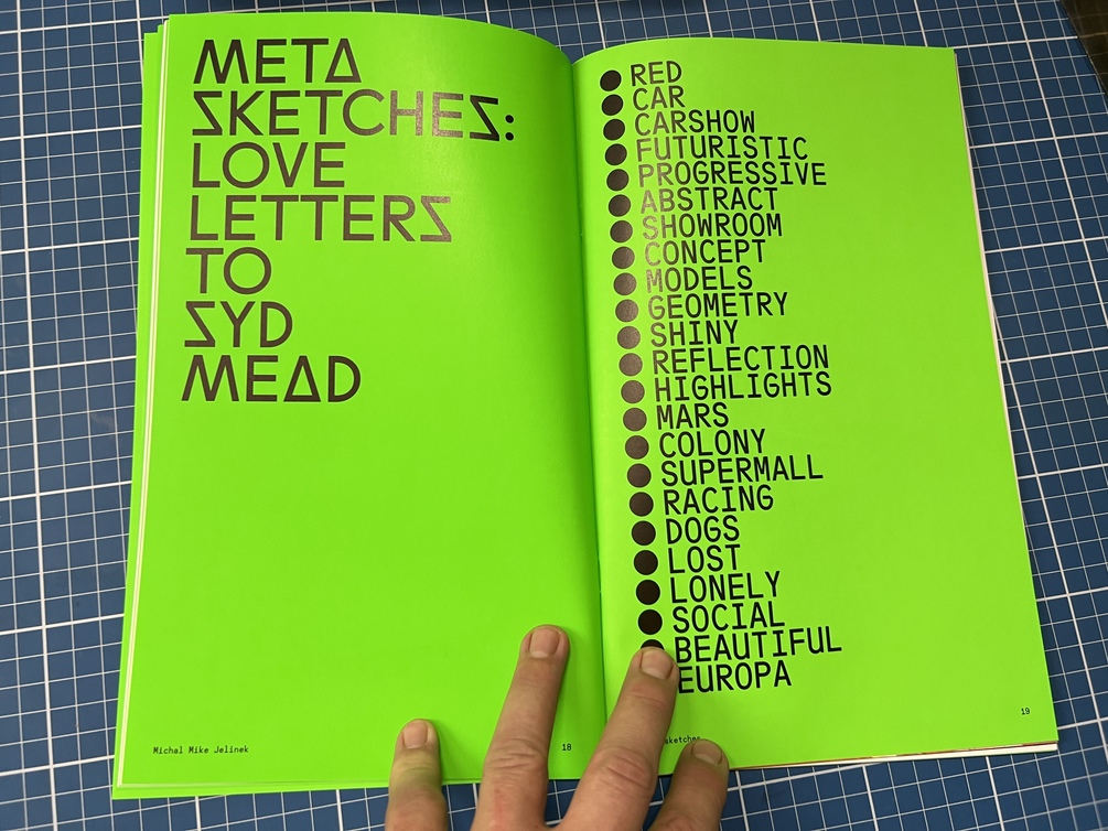 1) Metasketches e-book. Digital version of the exhibition catalogue. Foreword by Scott Robertson, Edward Eyth and Boris Jirku. English/Czech translation.