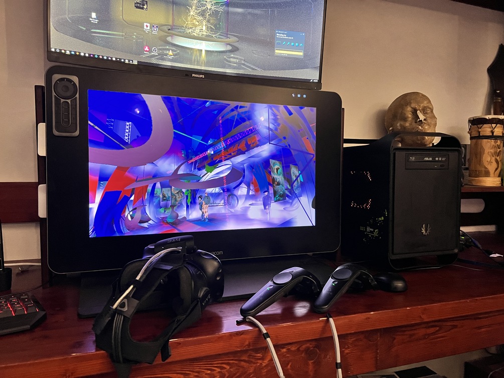 2) VR exhibition. The virtual experience includes complete exhibition content located in 3d environments and models made with GravitySketchVR, OpenBrushVR and Unity.
